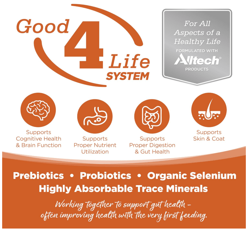 • Our proprietary Good 4 Life Plus system is optimized for high animal protein diets with key ingredients scientifically proven to support proper digestion & gut health, bioavailability of the entire formula, cognitive & heart health and overall well-being of your canine.