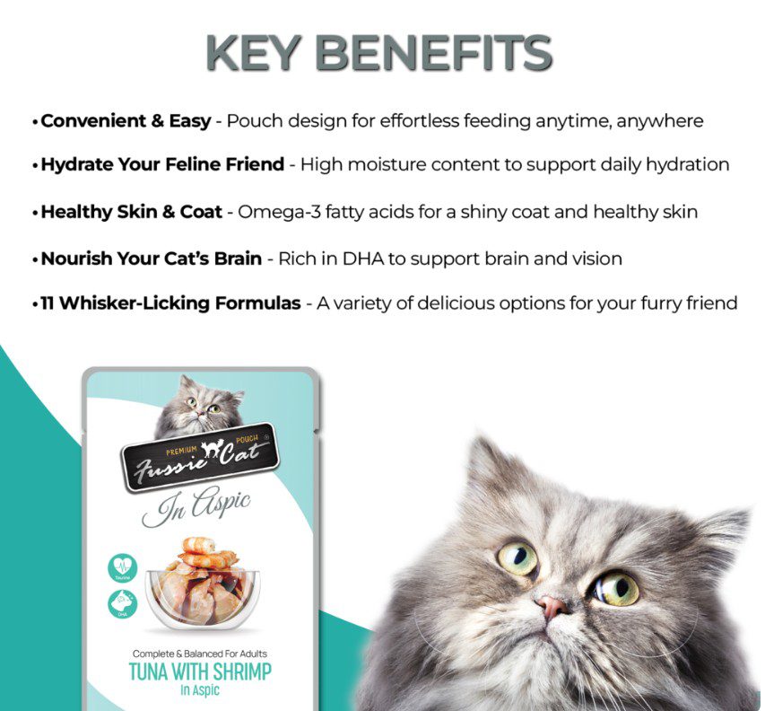 Fussie Cat Tuna with Shrimp in Aspic Pouch Recipe 2.47 oz Single Pouch